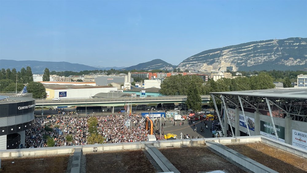 Es gibt einige Leute, die mich für verrückt halten, weil ich Konzerte des gleichen Künstlers bei der gleichen Tournee mehrfach besuche; in diesem Fall, bei Mylène Farmer stehen sogar fünf Auftritte in meinem Kalender. Aber, obwohl sich bei ihr im Gegensatz zum Beispiel zu Bruce Springsteen oder Pearl Jam die gespielten Songs nicht von Tag zu Tag unterscheiden, finde ich es trotzdem interessant, wie sich die Atmosphäre teilweise ändert und bei ihr gibt es zudem bei der Show auch so viele Einzelheiten, die man aufgrund der Reizüberflutung gar nicht bei einem Konzert registriert. In Genf waren weniger Zuschauer da als in Lille; das Stadion ist kleiner, war aber ausverkauft. Die Abläufe der Show schienen besser eingespielt als bei der Tourpremiere. Ich hatte eine komplett andere Perspektive auf die Bühne, fast schon zu weit seitlich, um den Effekt der Tiefe wahrzunehmen, der, wenn man frontal vor der Bühne steht, wohl besonders beeindruckend ist, der aber auch in Lille von weiter hinten und oben gut wahrnehmbar war. Die Show war sonst natürlich im wesentlichen die gleiche, begann auch etwa zur gleichen Uhrzeit, um wieder die Lichtshow besser zur Geltung zu bringen. Der Sound war an meinem Platz in Genf deutlich besser, weil hinter mir eben auch noch Zuschauer waren und nicht nur eine Betonwand. Und tatsächlich war die Stimmung im Stadion auch etwas besser und gelöster. Das Publikum ist früh bei den Songs aufgestanden und hat auch auf den Tribünen mitgetanzt. Ich wusste natürlich, was kommt, aber viele Einzelheiten der Show habe ich tatsächlich beim zweiten Mal gerade deshalb auch genossen, weil ich wusste, welche Effekte mich erwarten. Anderes hatte ich wirklich beim ersten Mal nicht registriert, wie zum Beispiel, dass Mylène am Ende von „Libertine“ eine Pistole zückt und schiesst, natürlich genau wie im Video von 1986. Übrigens wurde dann tatsächlich doch ein einzelner Song ausgetauscht, wobei ich ausgerechnet diese Entscheidung nicht unbedingt gut finde. „Pas le temps de vivre“ gefällt mir persönlich besser als „L‘Autre“. Im Internet wird spekuliert, dass der erste Song Farmer stimmlich vielleicht doch Probleme bereitet habe. Wahrscheinlich wird also „L’Autre“ in Zukunft in der Setlist bleiben oder die Sängerin könnte sogar, wenn sie in einer Stadt zweimal auftritt, wie in Lyon, Paris und Bordeaux, wechseln (ich persönlich rechne nicht damit). Sehr gefeiert wurden wieder „Oui mais … non“ und „XXL“; zwei Stücke, die ich sehr mag. Meine persönlichen Höhepunkte waren aber die neuen Stücke „Que laube est belle“ und „Que je devienne“. Das Ende für mich immer noch ein wenig zu abrupt, „Rallumer les Étoiles“ wäre wirklich besser früher in der Setliste platziert (und ich glaube, gestern wurden die Pyros früher entzündet als in Lille - ich wollte die fotografieren und war fast zu spät dran, um sie abzupassen). Aber insgesamt, das kann ich jetzt nach dem zweiten Konzert wirklich bestätigen, gefällt mir die Show besser als 2019. Ich bin hinterher recht gut rausgekommen, die Organisation mit den Bahnen in Richtung Genf hat relativ gut geklappt, so dass ich etwa eine halbe Stunde nach Konzert Ende schon wieder im Hotel war. Der Einlass war nicht ganz so optimal, bis mehrere Tore geöffnet.